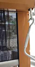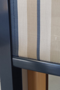 This blind is the most reasonably priced patio blind and will certainly help to shade an area and to some degree keep the wind out. However if there is strong wind it may want to blow out of the channels as the spring unwinds at the top. The bottom rail is able to be twisted and the end caps grab hold of the channel keeping it where it needs to be. A piece of the side channel can be seen in the pictures under here. These are not being done much so stocks are scarce for the channels. The main reason is that they often will not stay inside the channels and do not seal as well as the slidetrack blinds.